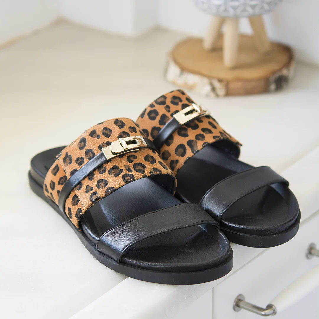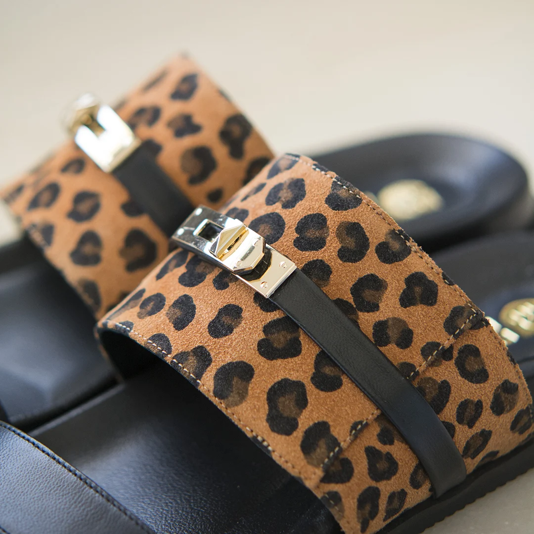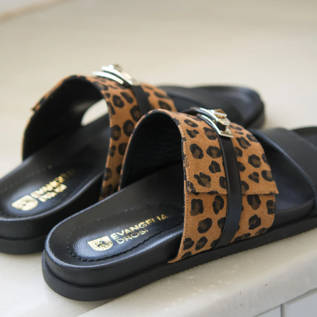 Γυναικεία Δερμάτινα Σανδάλια Λεοπάρ
