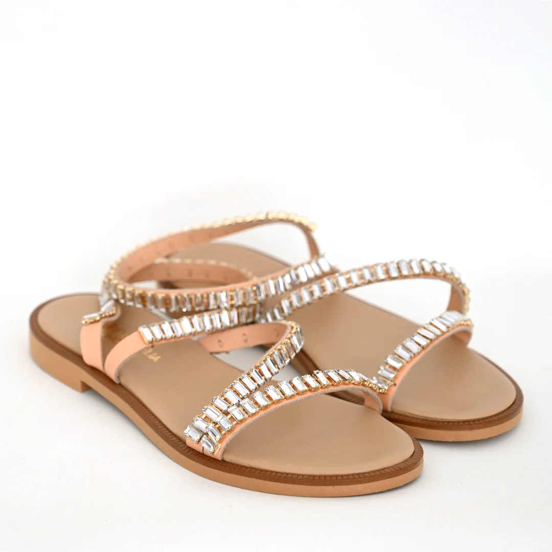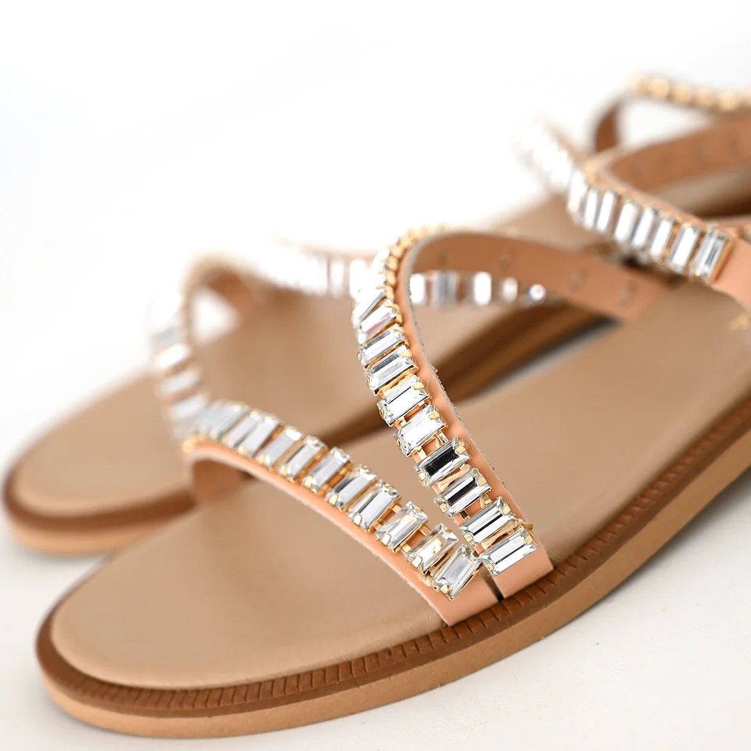 Γυναικεία Δερμάτινα Σανδάλια με Κρύσταλλα
