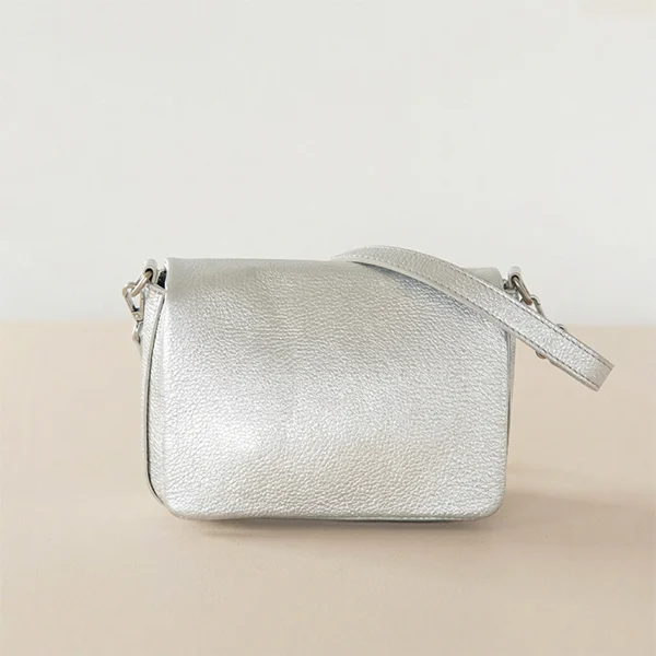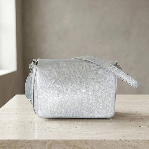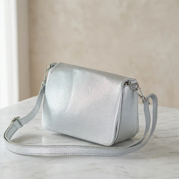 Γυναικεία Δερμάτινη Τσάντα Ασημί